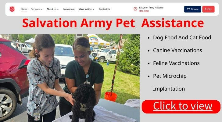 Pet-related assistance may be available through local Salvation Army service centers and partner organizations via:
